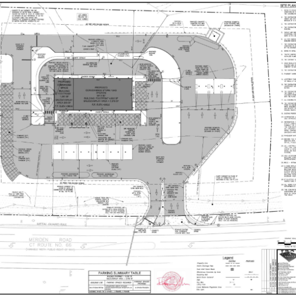 1,500 sf end cap with drive thru as part of a new gas station at the corner of Meriden Road (Route 66) and Higby Road, Middlefield, CT. 21,800 cars per day on Route 66.